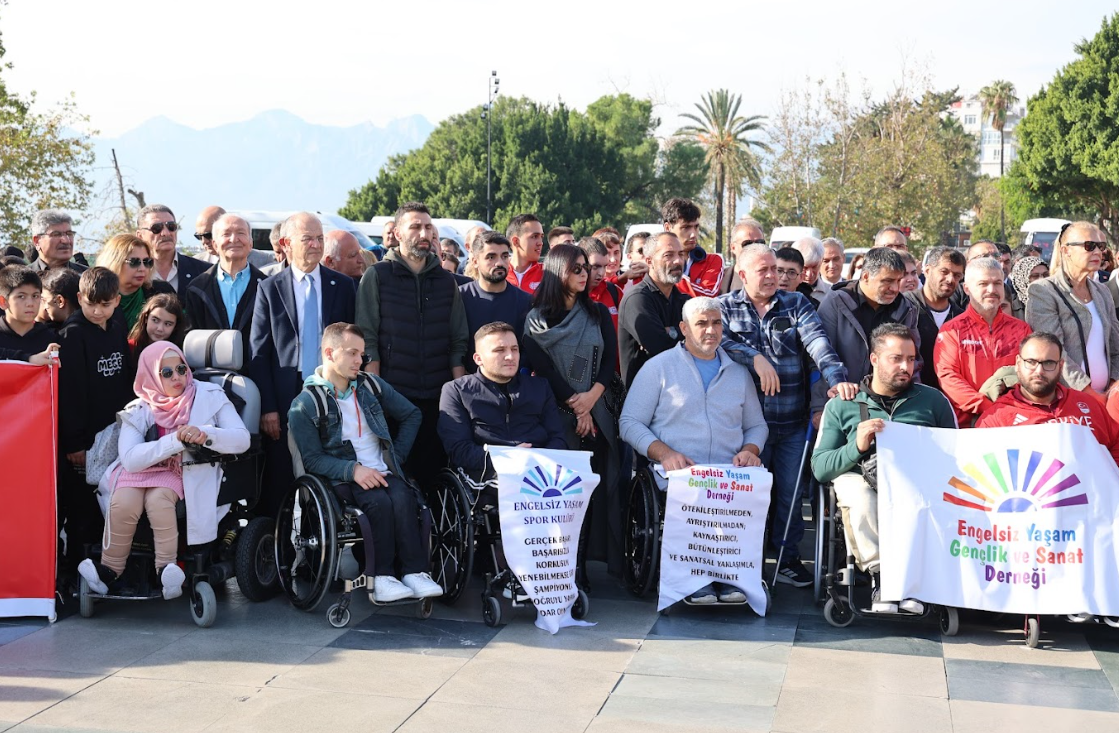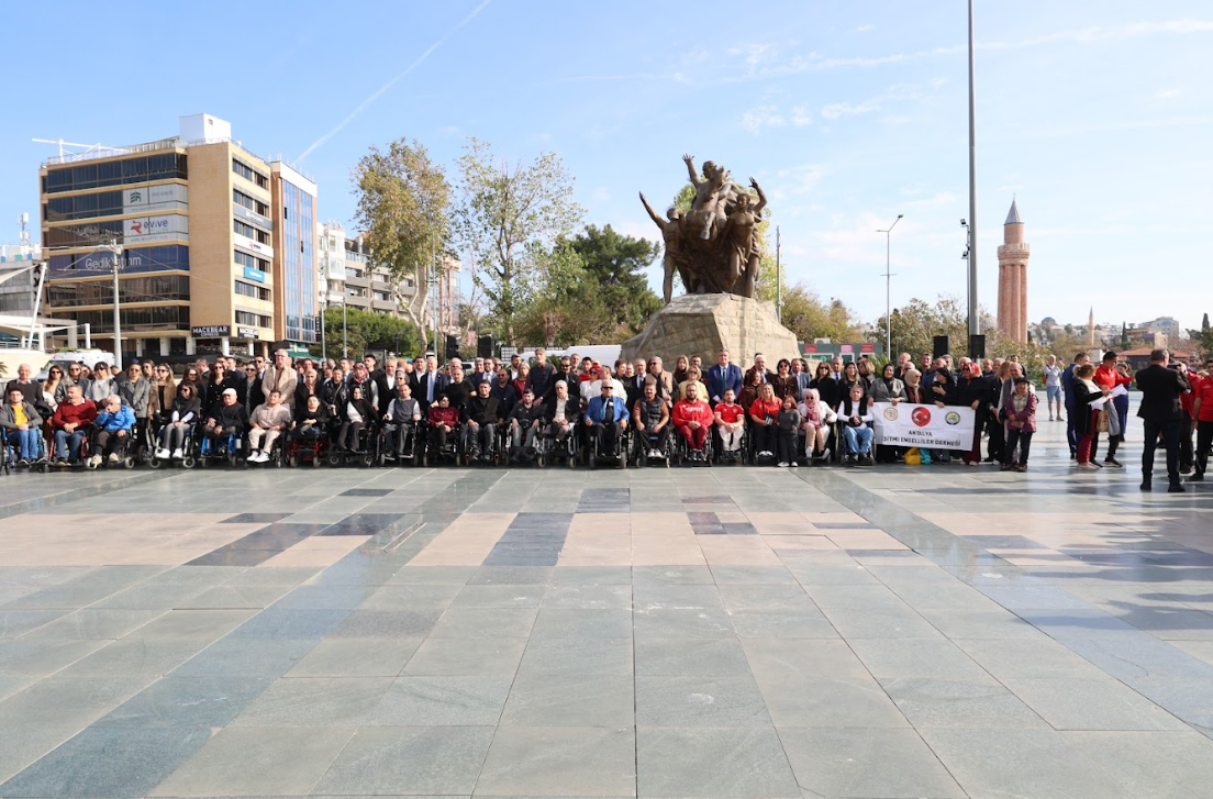 Antalya Büyükşehir Belediyesi’nin katkılarıyla 3 Aralık Dünya Engelliler Günü’nde Cumhuriyet Meydanı Atatürk Anıtı önünde de tören düzenlendi. Antalya Büyükşehir Belediyesi Sosyal Hizmetler Dairesi Başkanı Güven Ulutekin, Antalya Büyükşehir Belediyesinde Başkan Danışmanı Türkiye Sakatlar Derneği Antalya Şube Başkanı Mehmet Karavural, kamu kurum ve kuruluşu temsilcileri, STK’lar ve çok sayıda öğrenci törende yer aldı. Antalya Büyükşehir Belediyesi Bando ve Orkestrası eşliğinde saygı duruşu ve İstiklal Marşı’nın okunmasının ardından Atatürk Anıtı’na çelenk sunuldu. Konuşmaların ardından katılımcılar Antalya Büyükşehir Belediyesi Bando ve Orkestrası’nın hareketli müzikleriyle eğlendi.